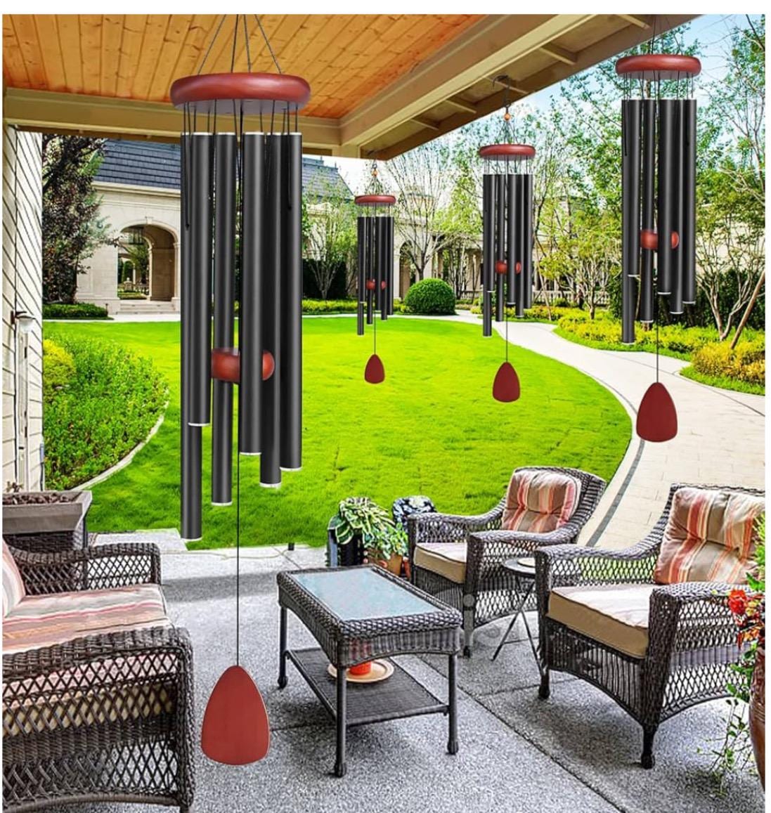 【WIND CHIME DESIGN】Wind chime is made of aluminum pipe and pine. The total length of the wind chime from the top's large S-shaped the heavy duty hook to the bottom's catcher is 36 in The wood is made of wear-resistant and non-cracking pine. The adjustable wooden striker allows you to adjust your favorite position at will. 6 classic anodized aluminum tubes have excellent corrosion resistance and wear resistance, and the length ranges from 8.8" to 12.8 in var