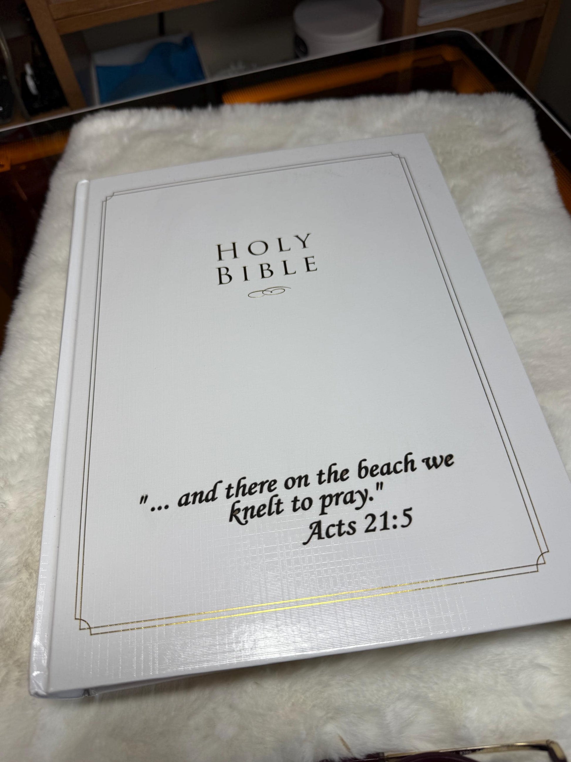 The last picture shows you what engraving would look like on this type of Bible.