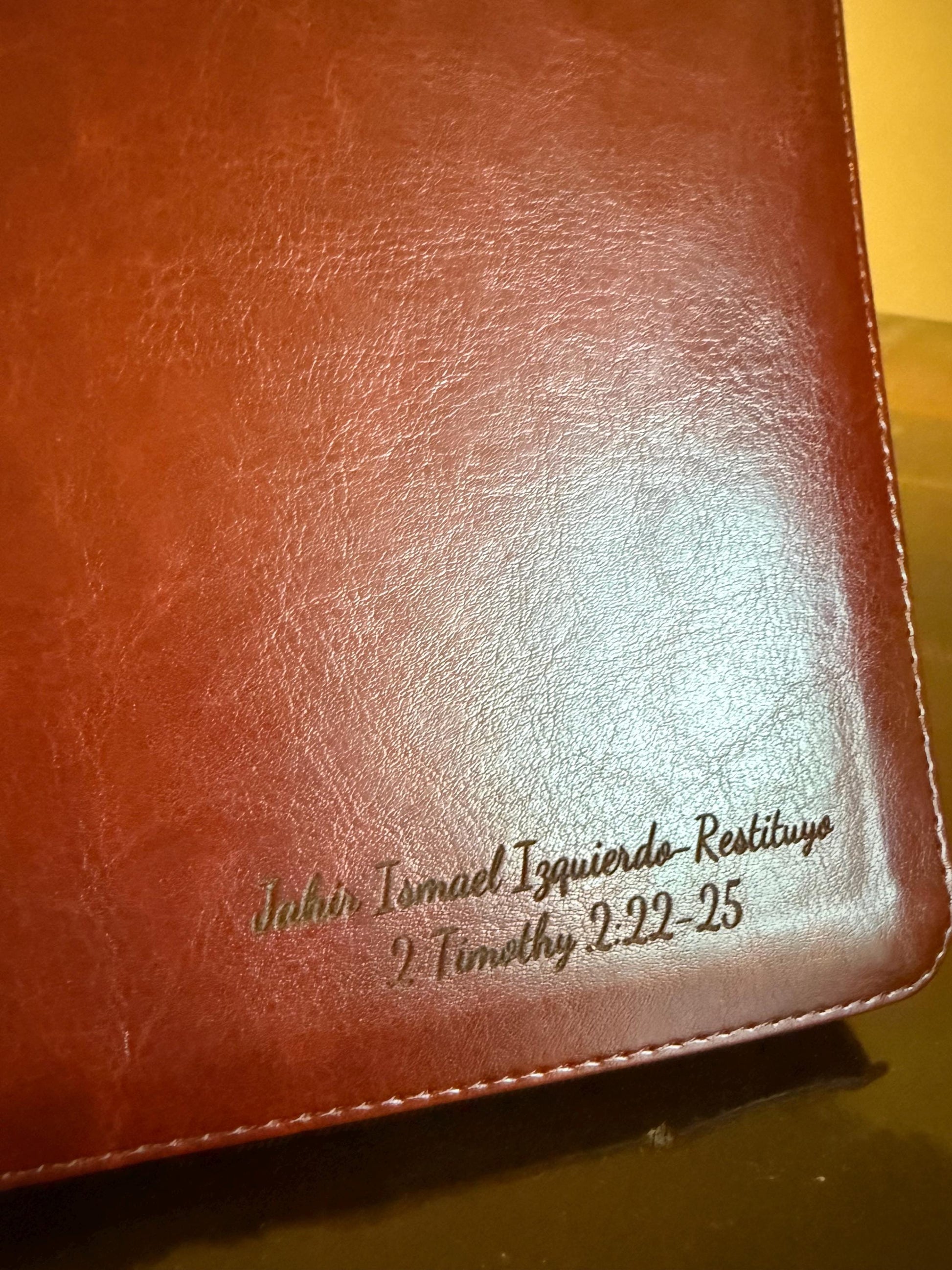 Personalized Biblia Reina Valera 1960 letra grande. Símil piel canela, cremallera, tamaño manual / Spanish Bible RVR 1960. Handy Size, Large
