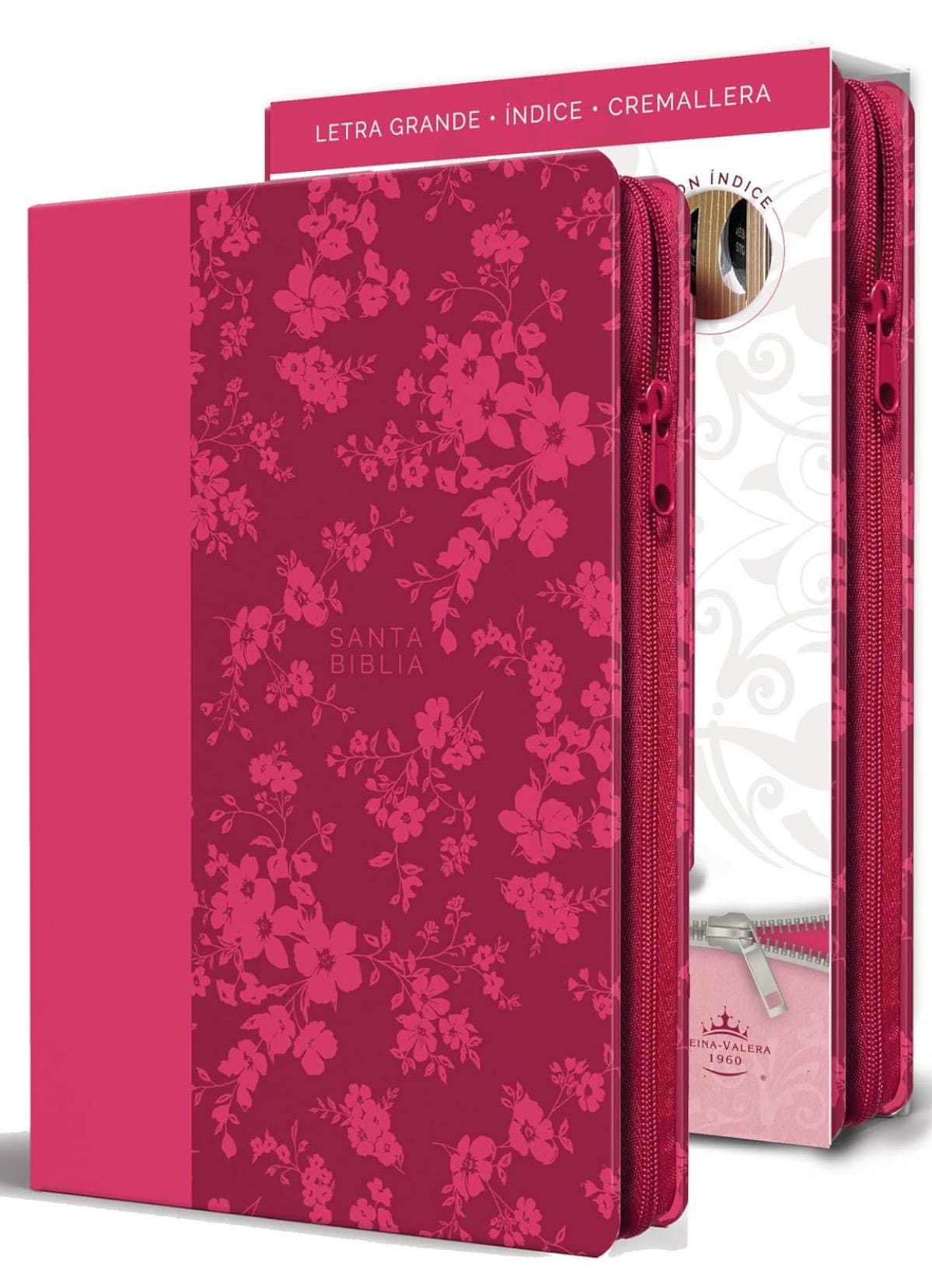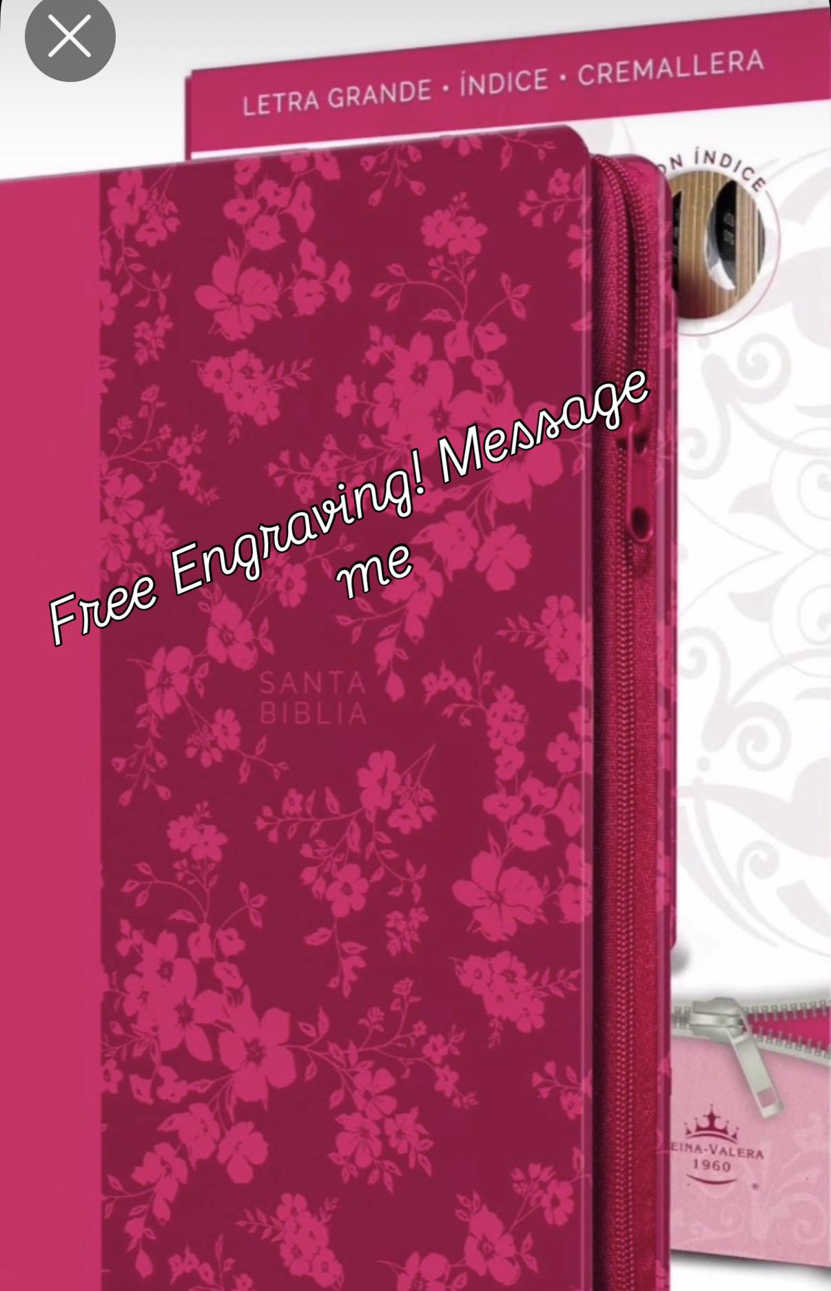 Personalized Biblia Reina Valera 1960 letra grande. Símil piel fucsia, cremallera, índice, manual / Spanish Bible RVR 1960. Handy Size, Larg