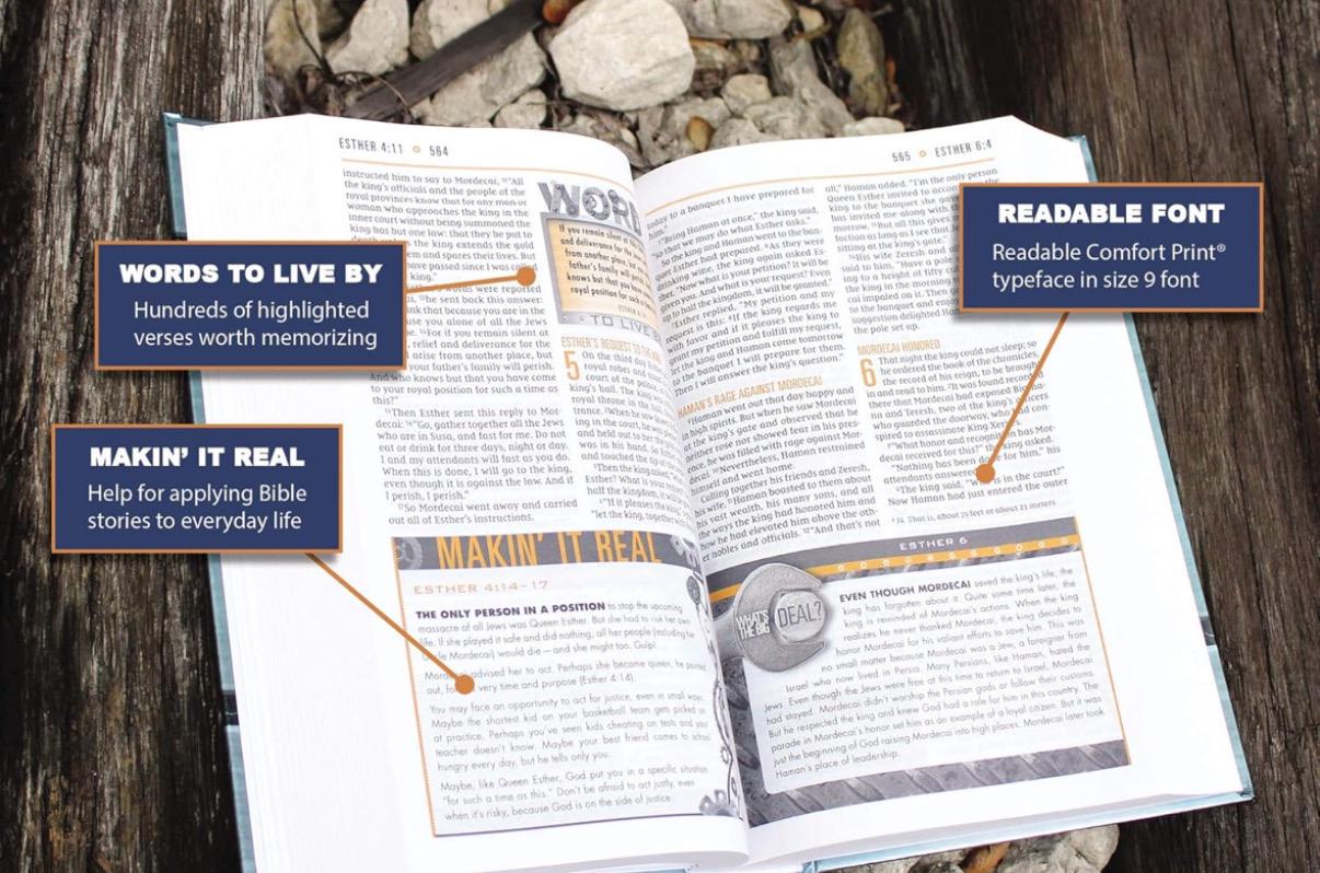 The NIV Boys’ Bible is a full-featured Bible designed to help boys ages 8 to 12 dig deep into Scripture. Loved by parents for years, this Bible allows boys to learn amazing new facts, discover inspiring people and stories, and uncover all kinds of stuff they never imagined was in God’s Word. Helpful, fun, and often downright astonishing, the NIV Boys’ Bible includes unique and meaningful content developed around the needs and interests of growing boys.