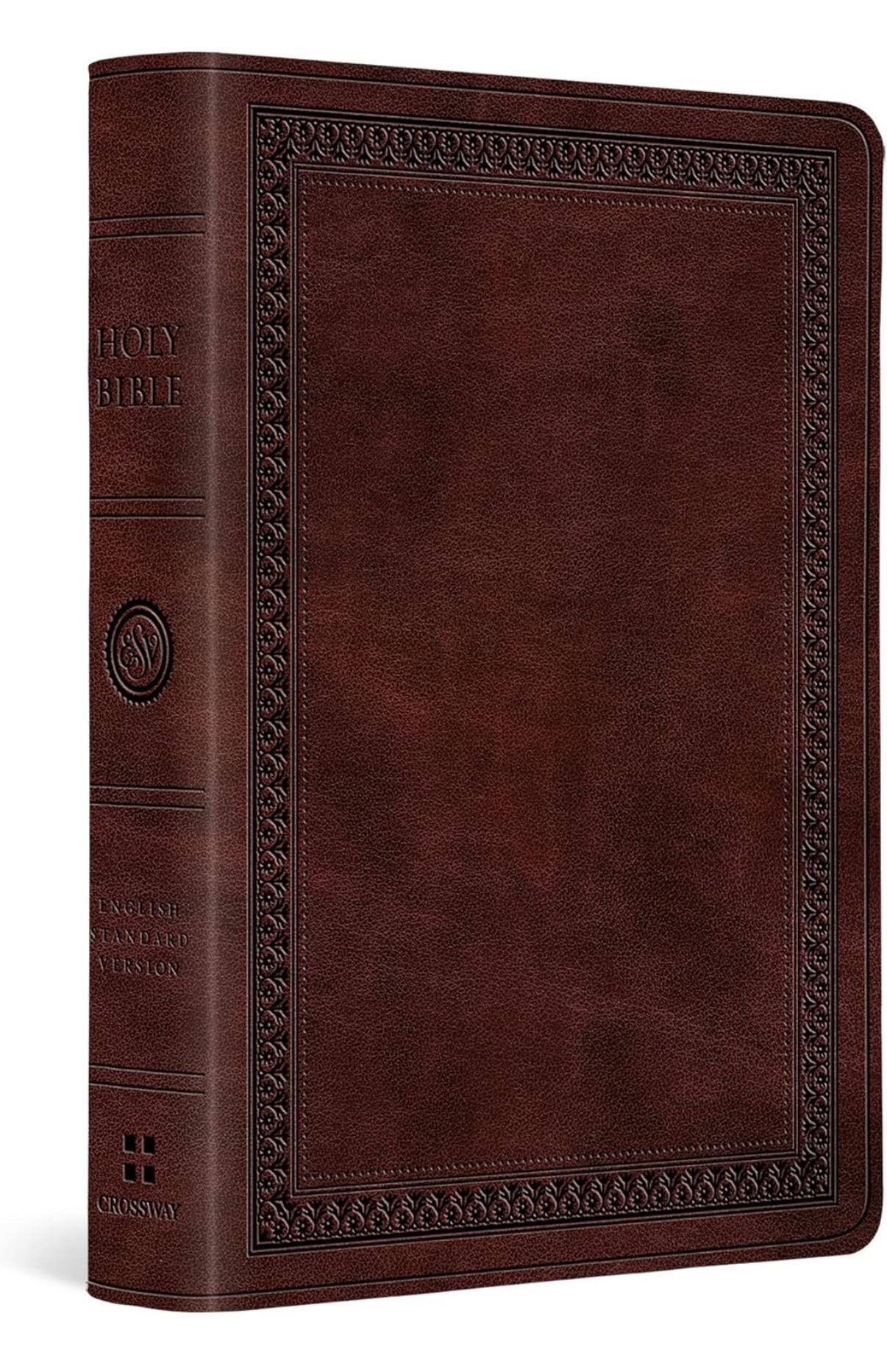 Personalize your Bible with your name and a verse on the back, all for free. The ESV Value Large Print Compact Bible features the full ESV text—providing a portable, readable Bible at an affordable price in a double-column text format with a concordance and presentation page. Affordable: Durable and elegant low-cost edition Line Matching: Reduces the degree to which print shows through from the opposite side of a page Quality Materials: Features smyth-sewn binding and an elegant TruTone cover with a lifetime guarantee