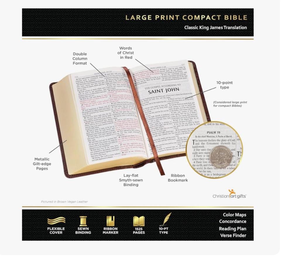 Personalized KJV Holy Bible, Compact Large Print Vegan Leather Red Letter Edition - Ribbon Marker, King James Version, Pearlized White