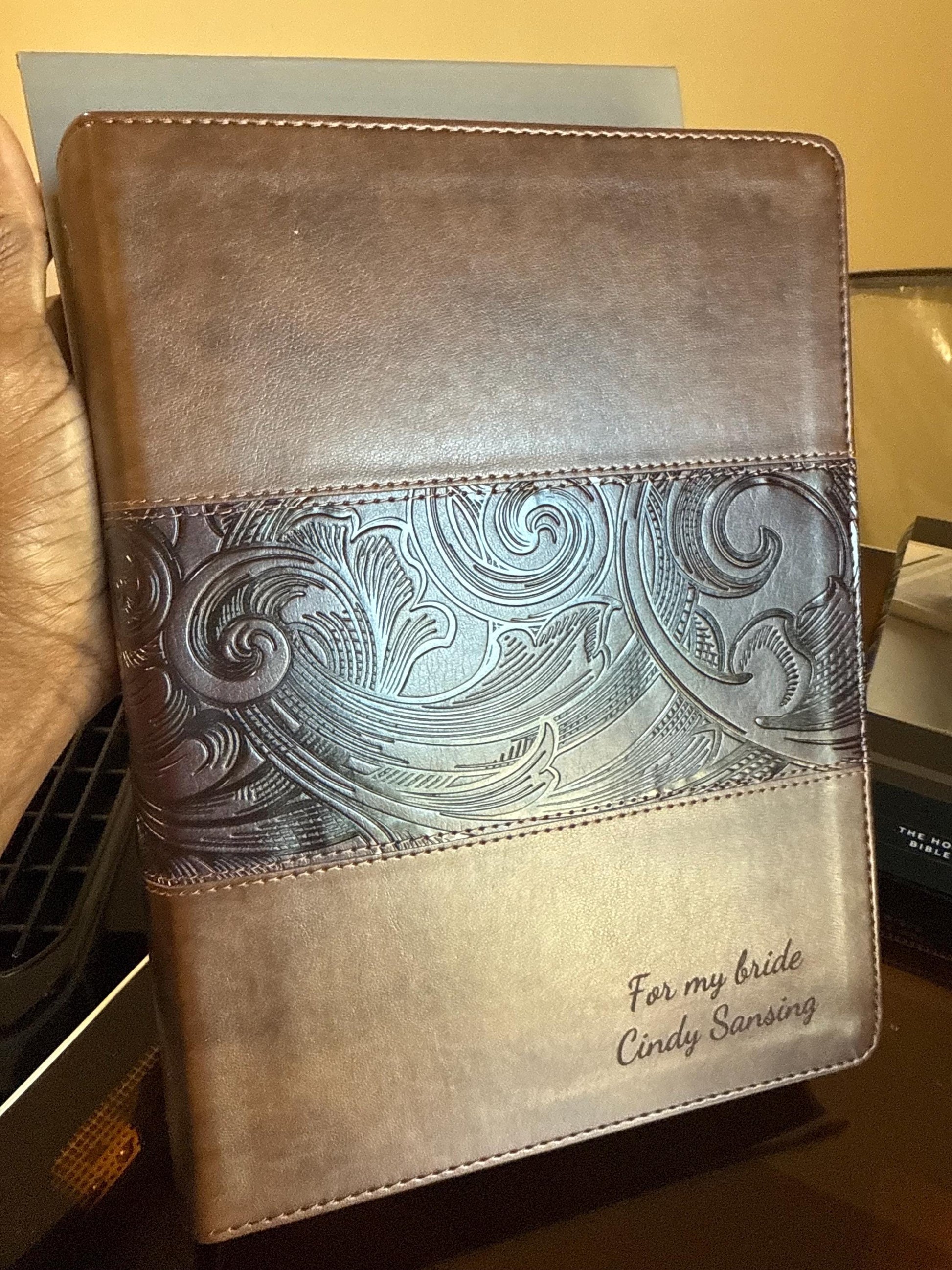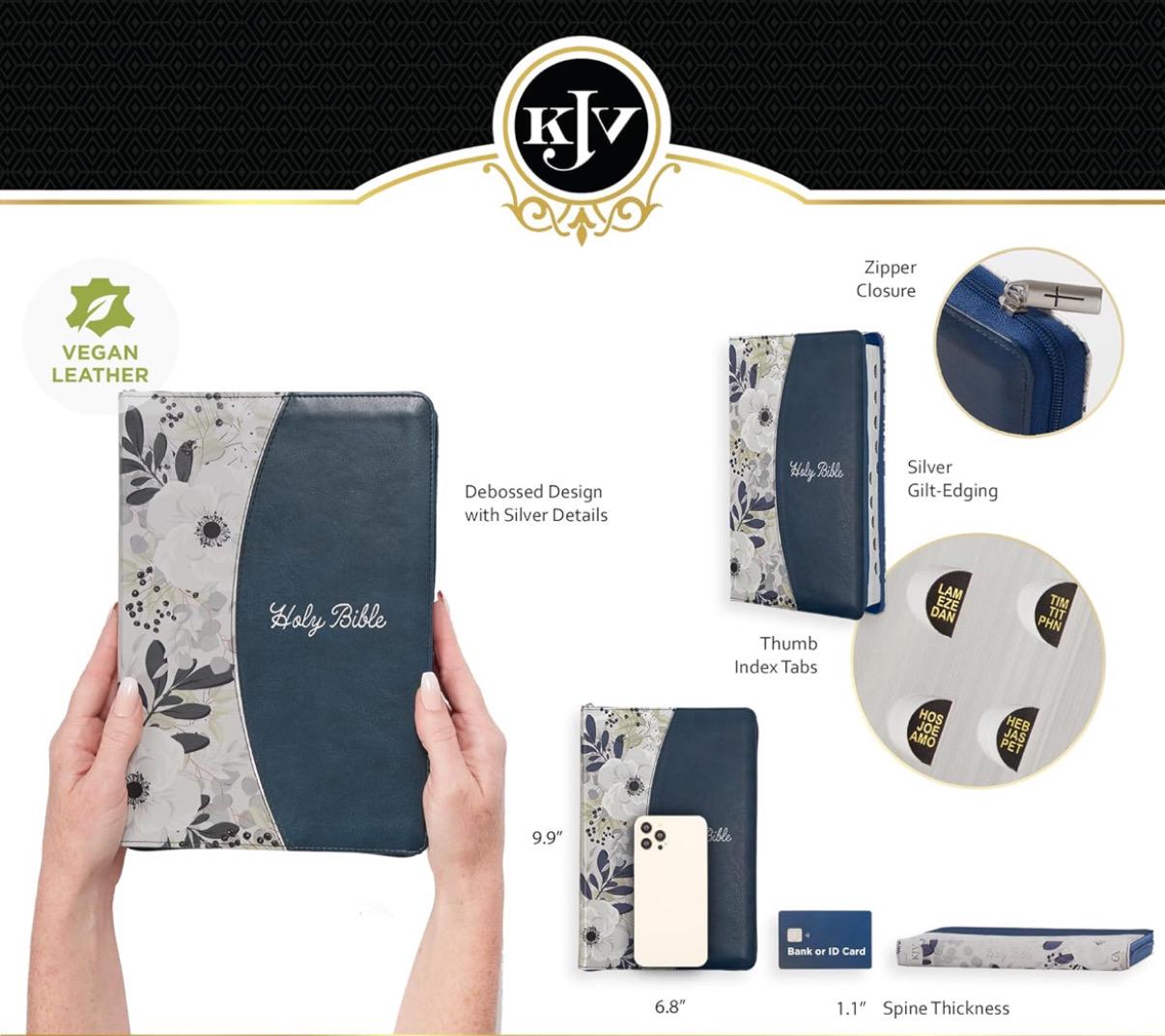 Personalized KJV Holy Bible, Thinline Large Print Faux Leather Red Letter Edition Thumb Index Ribbon Marker, King James Version, Blue Zipper