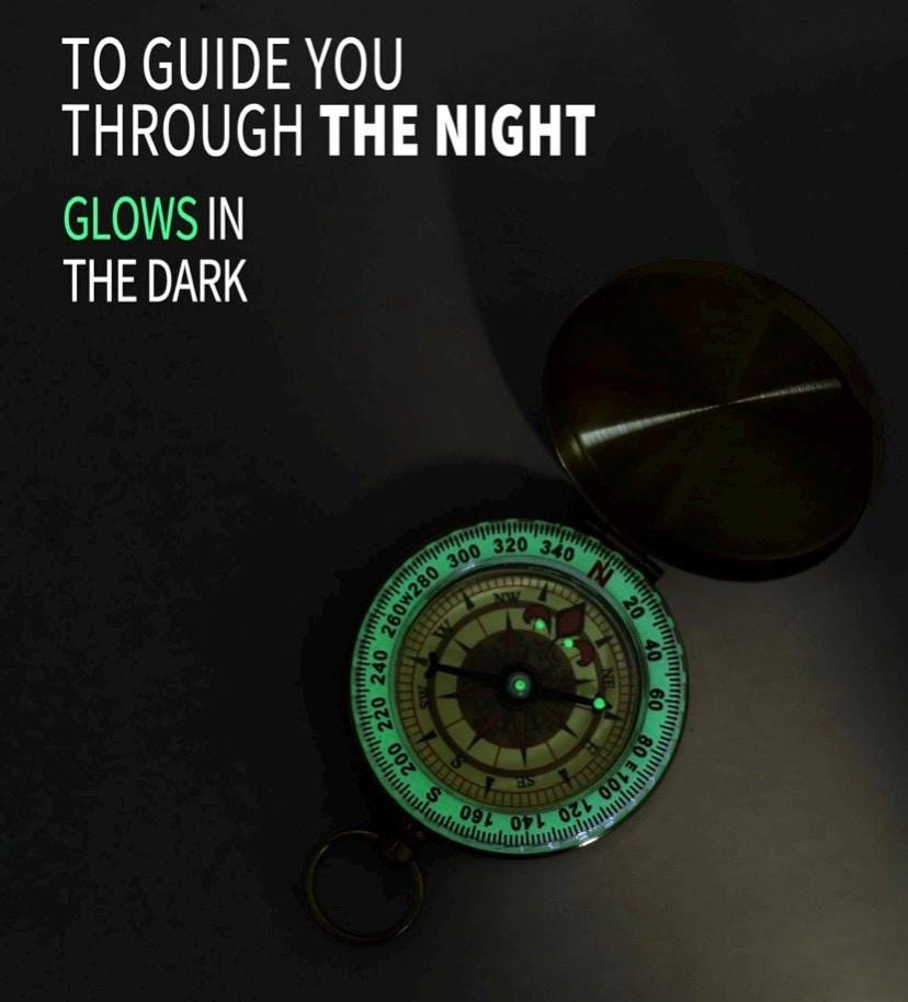 The compass features a luminous dial that glows in the dark after being exposed to natural or artificial light, making it easy to use in low-light or night-time conditions. This feature ensures that you can always rely on the compass, even in low visibility situations. Simply expose the compass to light for a few minutes and it will remain illuminated for hours.