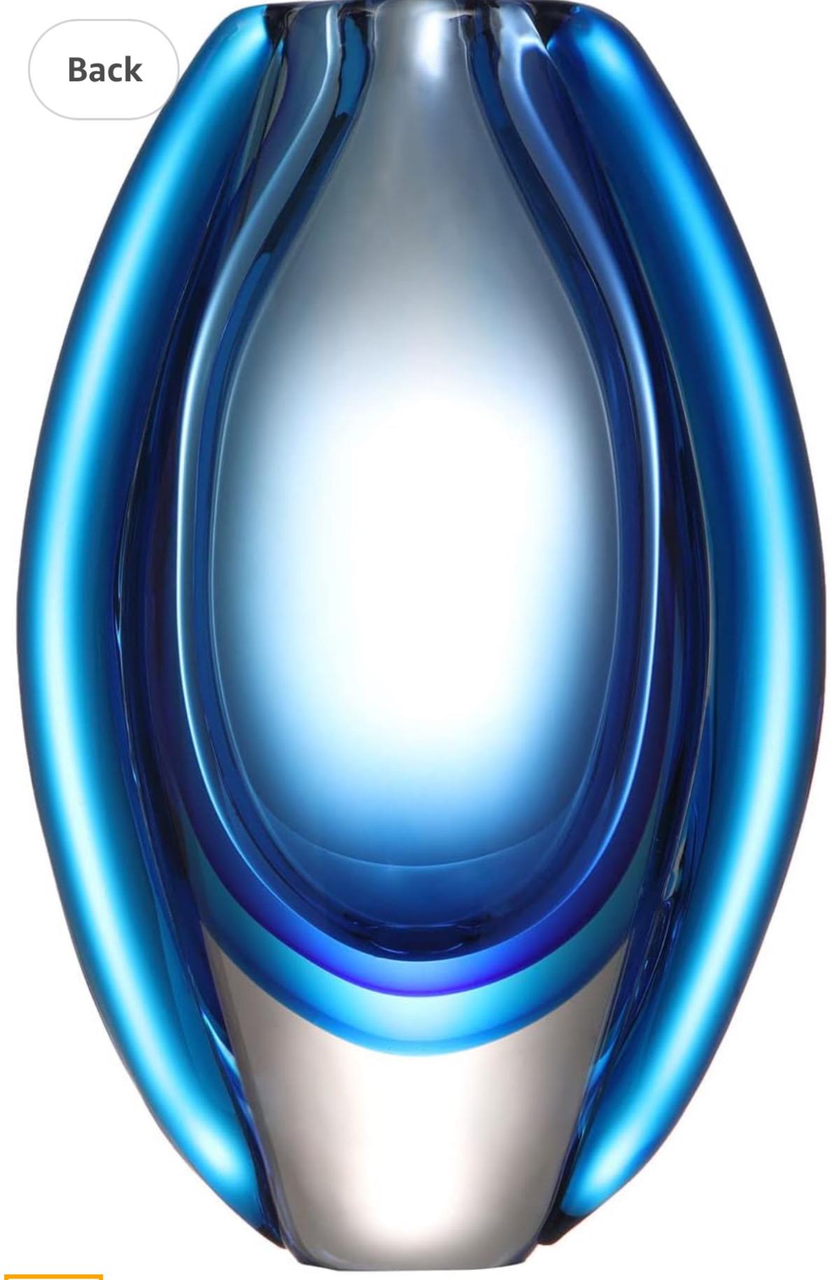 Personalized Luxury Lane Hand Blown Sommerso Oval Art Glass Vase for Decor Centerpiece Table Decoration Blue 10 inch Tall