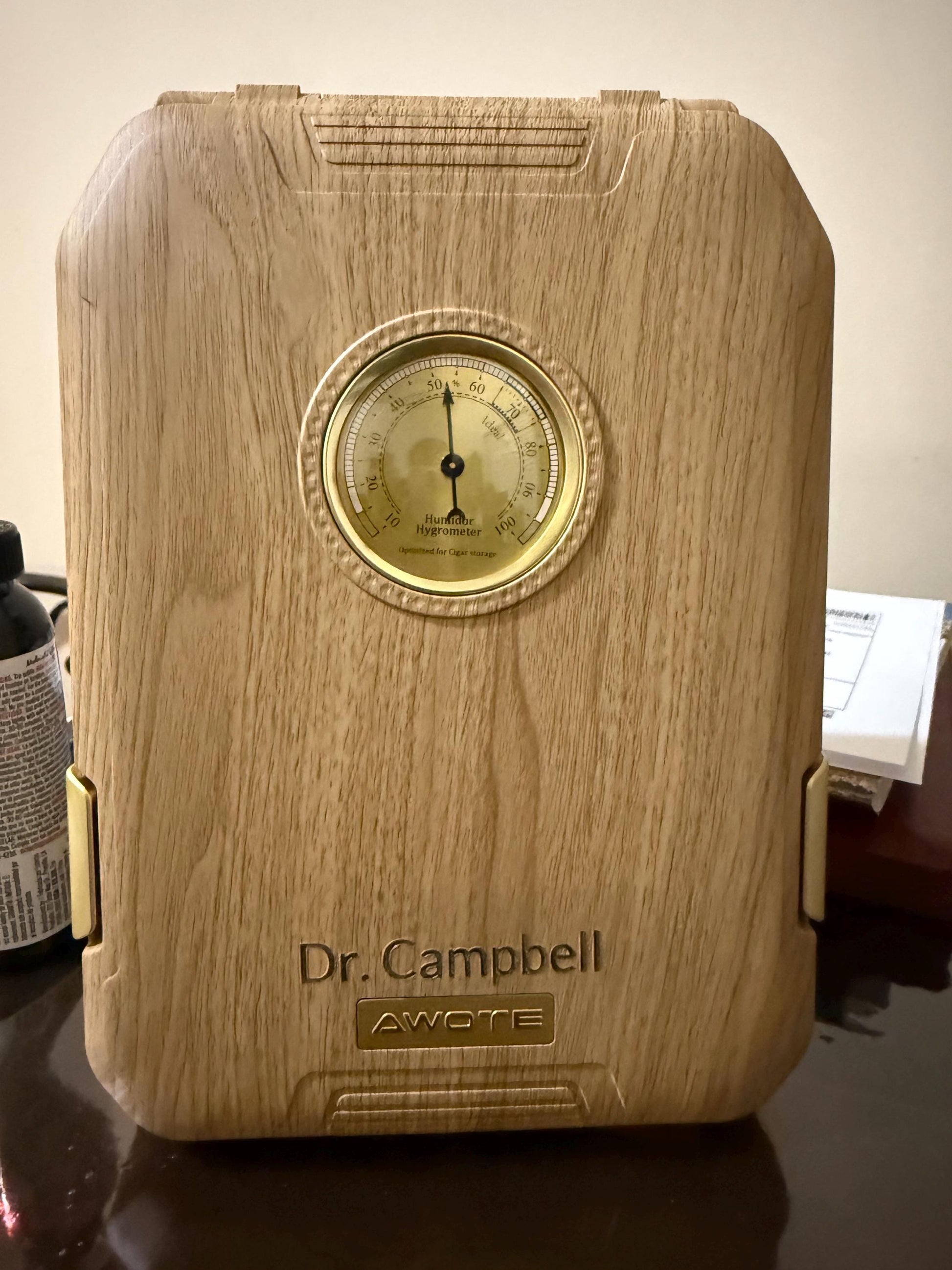 High-end Travel Cigar Humidor】The travel cigar humidor is made of ABS material, which is waterproof and drop-proof, and the surface shows wood texture, which adds a touch of classical flavor to this stylish item. Cigar humidor measures 9.6*6.8*2.3inch and can hold 7-9 cigars. Portable cigar humidor is compact in size and fits in your luggage, allowing you to enjoy your cigars while traveling.This cigar humidor is inlaid with a hygrometer on the top, which makes it easy for you to check the humidity inside the cigar case at any time and take appropriate measures in time