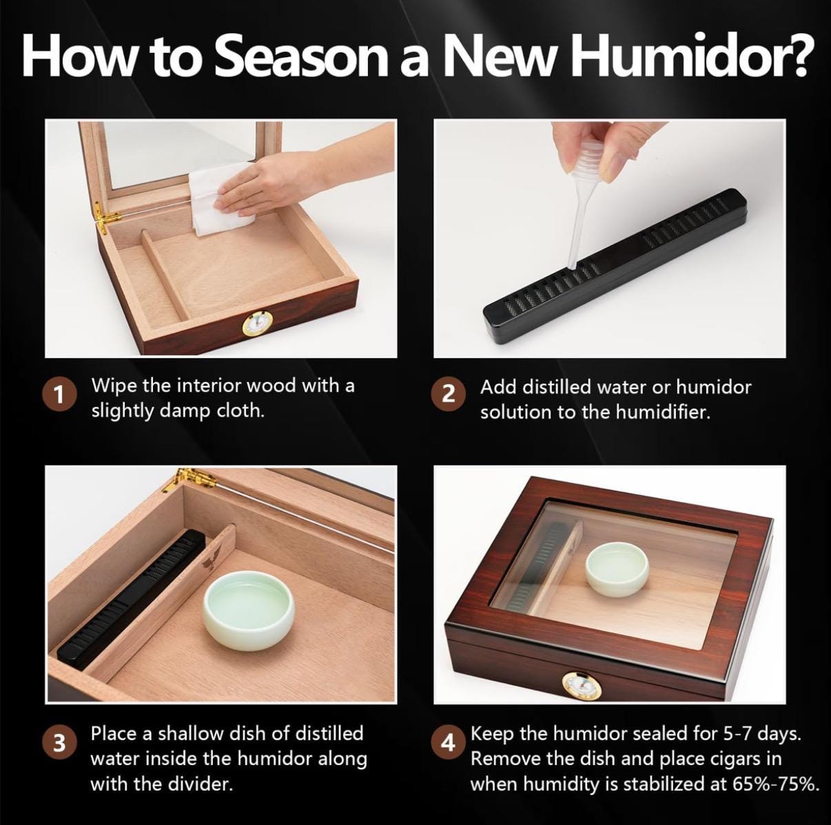 Cigar humidor with a cigar Humidor Box, Humidifier, Hygrometer, and the mini movable partition board can help you fix the cigars.