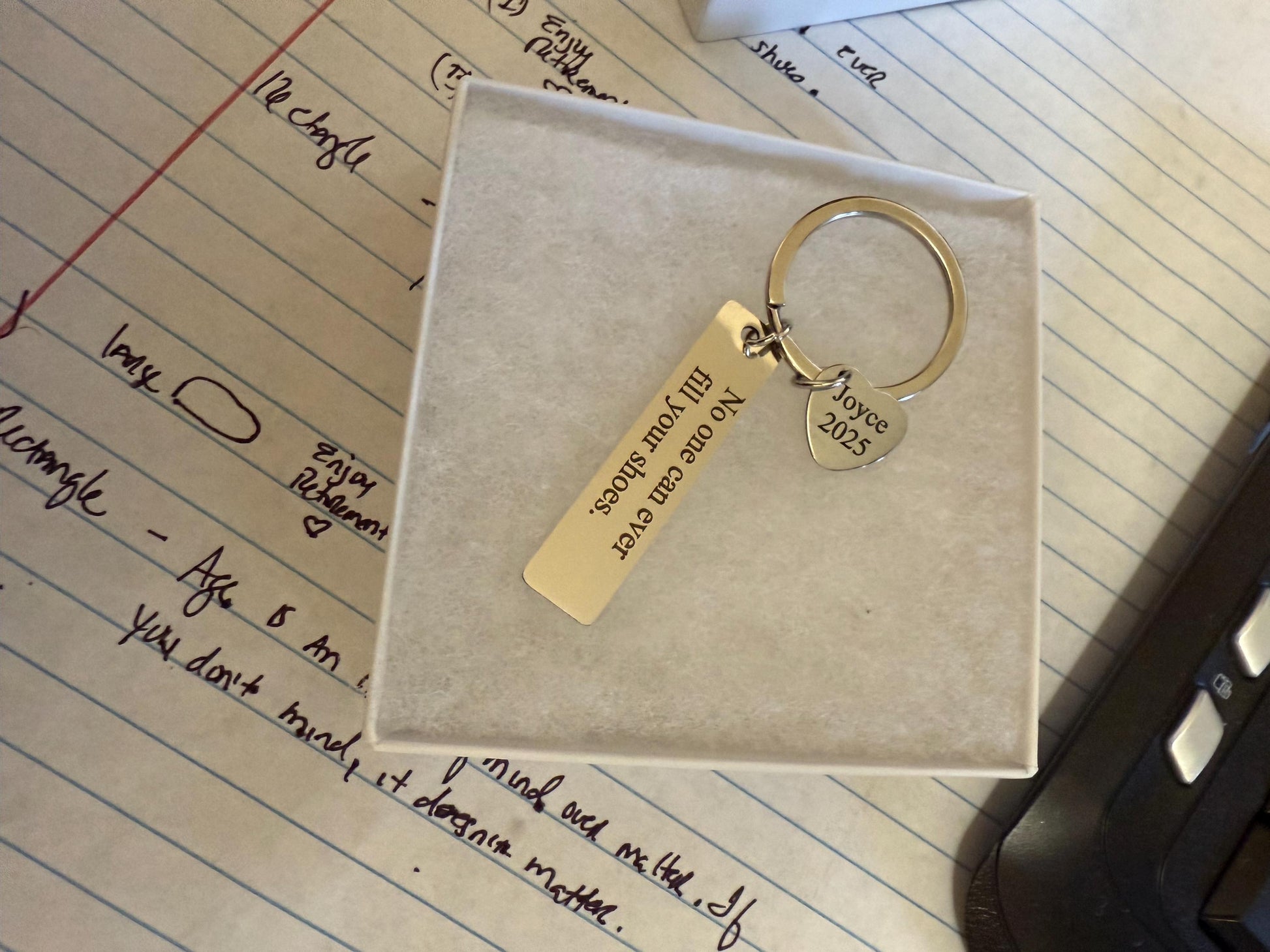 Personalized rectangular, heart keychain