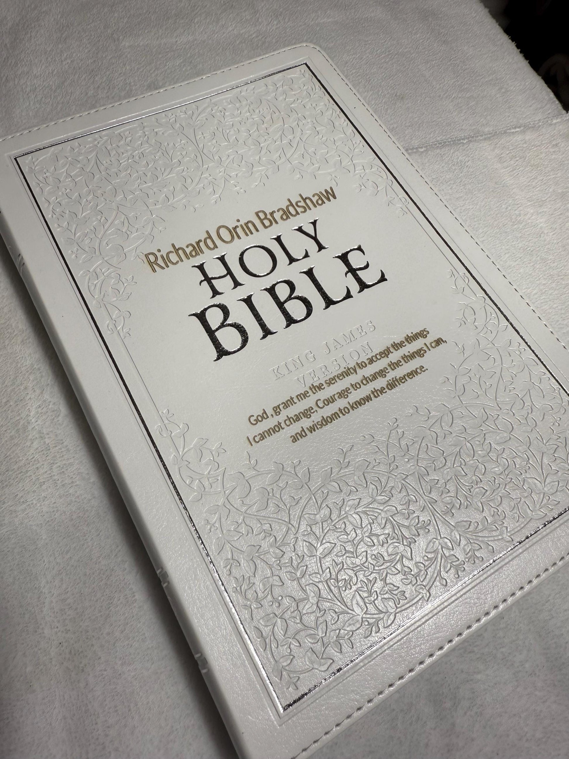 Personalized White Faux Leather KJV Bible, Thumb Index, Red Letter Edition